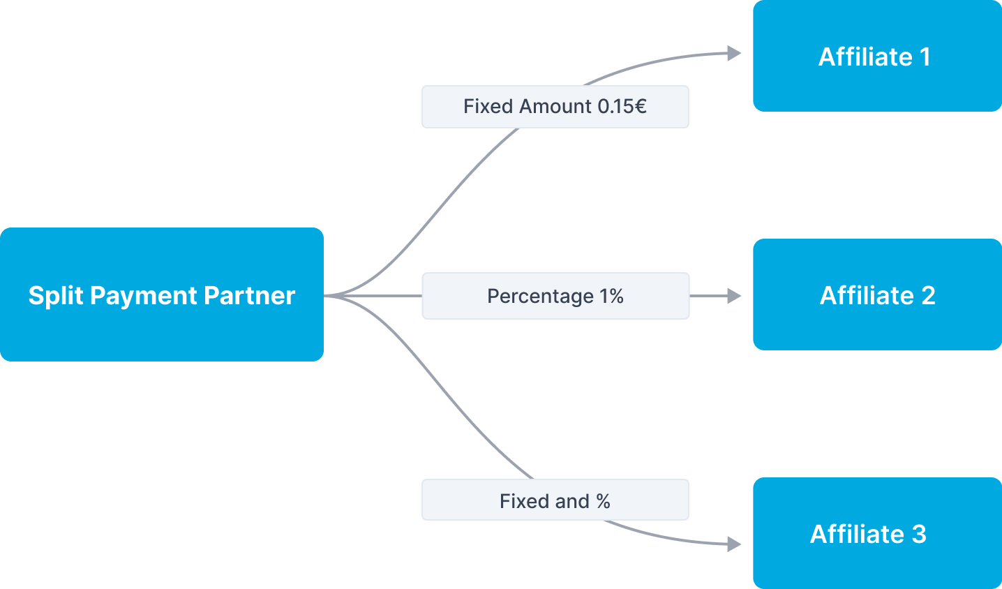 - A percentage (agreed beforehand) of each transaction is sent to your partner account
