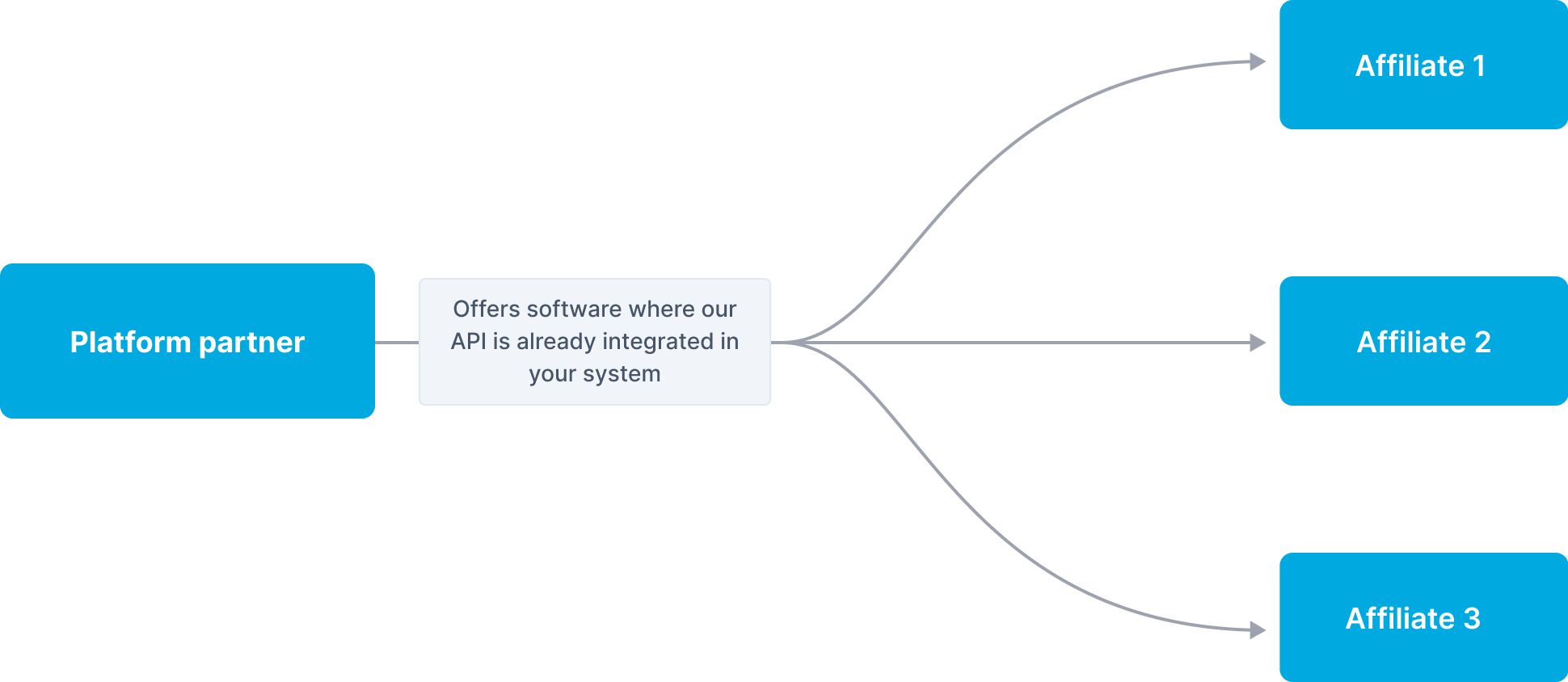 As a platform partner, you offer your affiliates a specialized software solution with payment capabilities embedded directly into the product. Your backend integrates with the MultiSafepay API and incorporates our payment services as part of your software offering.